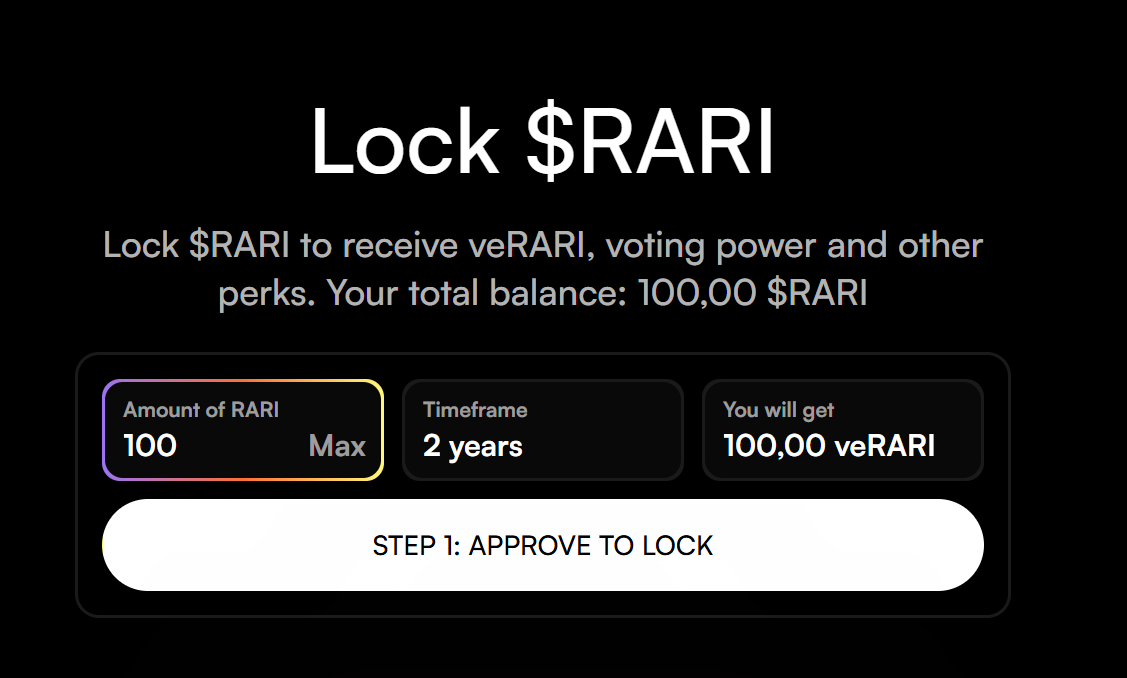 • Locking $RARI for the maximum period (2 years) gives you a 1:1 $RARI → veRARI ratio.
