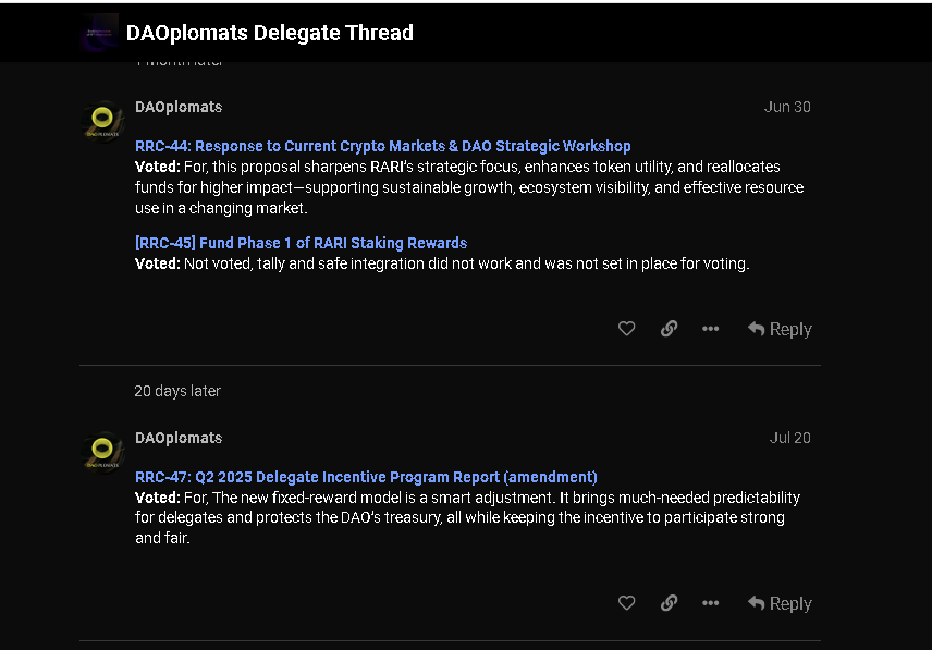The program is not a competition. Every delegate can earn up to 1,500 RARI, independent of anyone else’s results. The cap and fixed-per-activity model were introduced in Q2 after DAO feedback and approved unanimously.